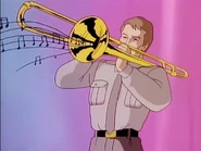 On their second stop while traveling through time, thanks to Techrat's "Time Travel Device", Jem and The Holograms land in London in 1944 during World War II times. After changing appearance to dress accordingly to the times via Synergy's holograms, Shana realizes where and when they are by looking at a poster on a wall that advertises the "The Ben Tiller Band" playing soon. Two soldiers passing by, named Larry and Ray, and who happen to be members of this band, hear them talking about Ben and invite them to their rehearsal.